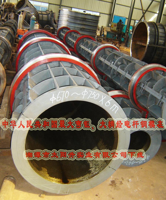 中華人民共和國(guó)最大大彎矩、大梢經(jīng)電桿鋼模在湘潭市太陽(yáng)升實(shí)業(yè)有限公司下線